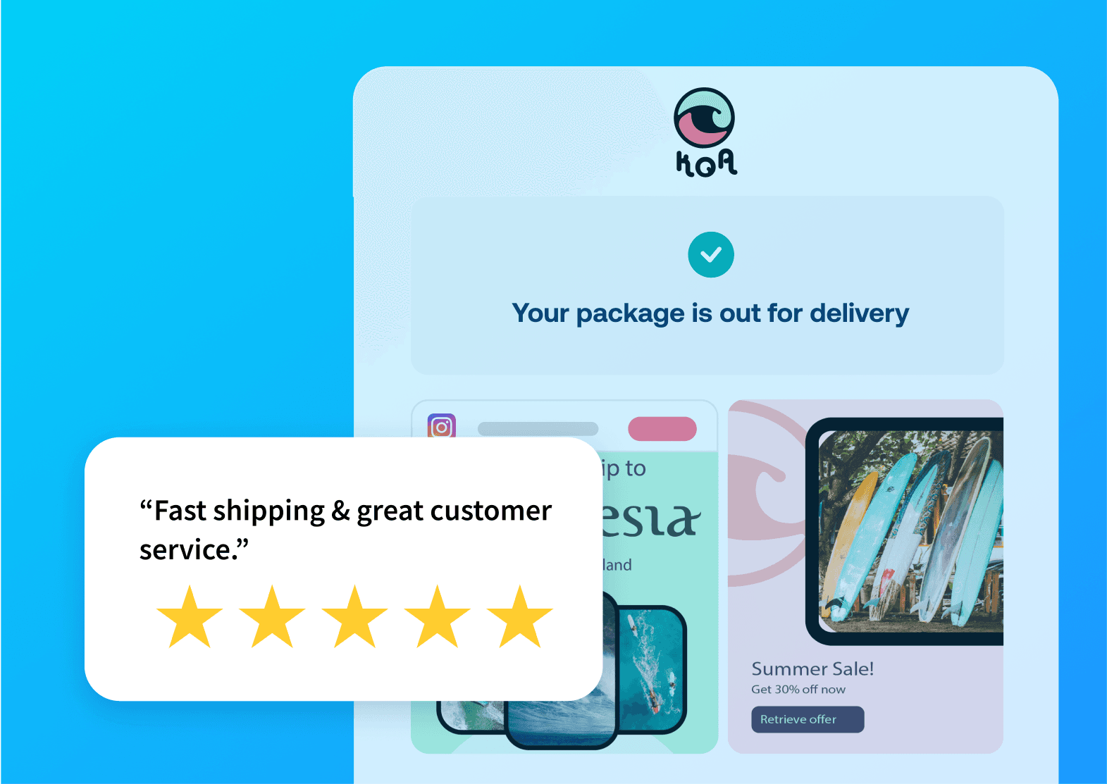 Send automatic delivery updates via email and SMS to enhance the customer journey. Drive cross-sales for your online store—all in your customer’s local language, effortlessly.