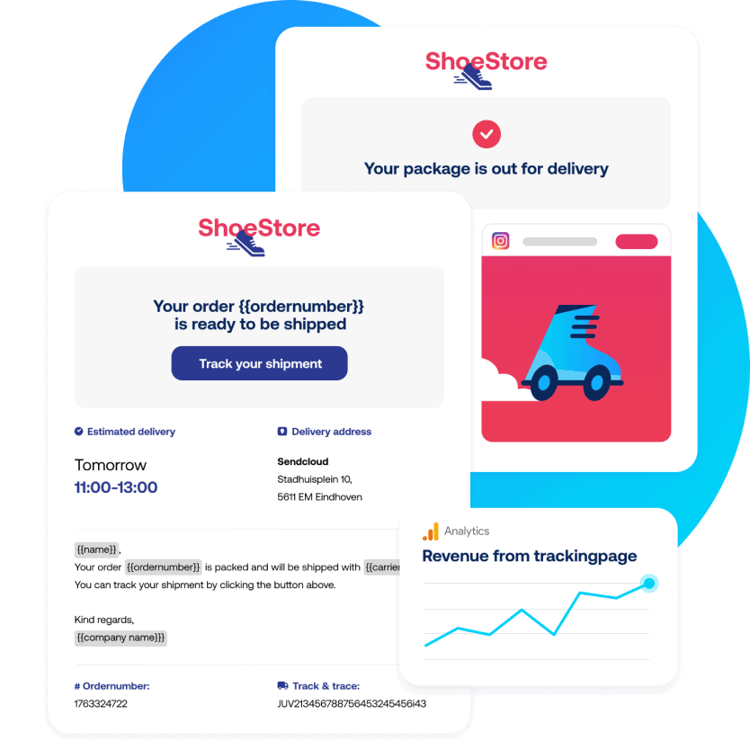 Keep your customers informed the way they prefer. Embed an easy-to-use tracking widget on your site, send automatic updates, and offer a branded tracking page for a seamless experience with Sendcloud’s parcel tracking software.