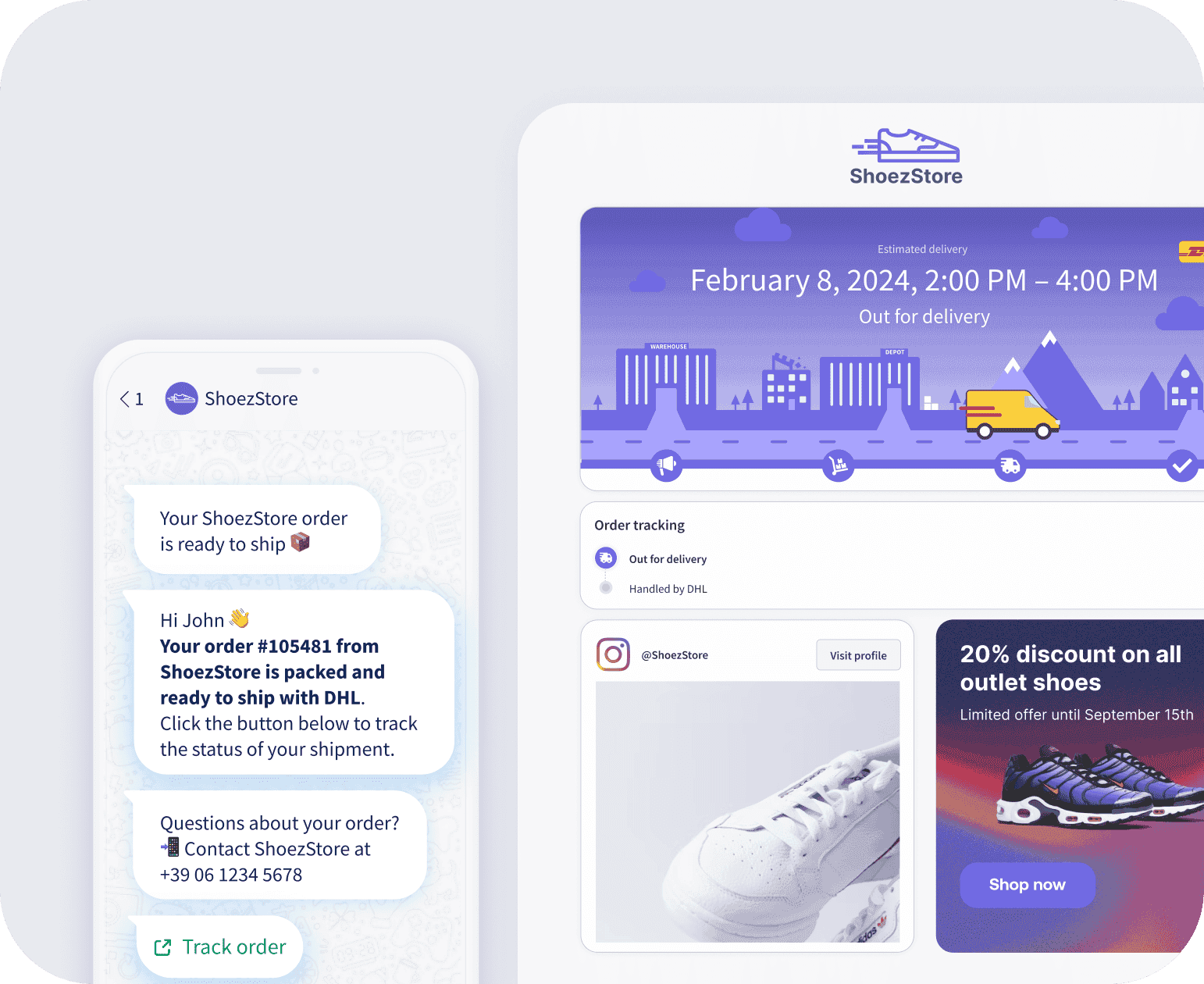 Notify customers throughout the shipping journey—fully automated via SMS, WhatsApp, and email. Share accurate delivery windows, send timely delay alerts, and use to live chat to resolve any issues.